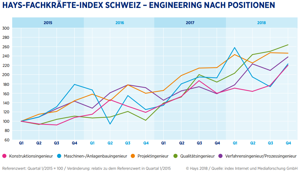 Hays Fachkräfteindex: 4’862 Engineering-Spezialisten gesucht per Ende 2018