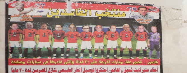 Für das ancien régime haben die meisten Menschen nur noch Hohn und Spott übrig. «Die Auswahl der Tunichtguten», lautet der Titel dieses Plakats. Im Kreis rechts oben: «Teamchef Mubarak».