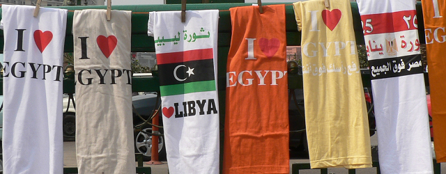 Die Fahne der Aufständischen in Libyen, die Gaddafi stürzen wollen, wird wie die Staatsflage Ägyptens als Souvenir feil geboten.