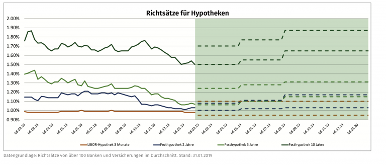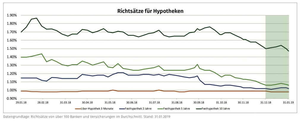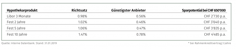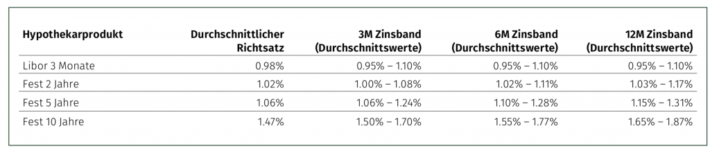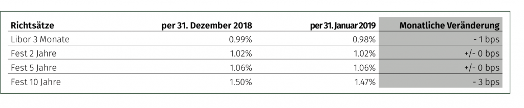 In der nachstehenden Tabelle finden Sie die durchschnittlichen Richtsätze für Hypotheken per 31. Januar 2019.