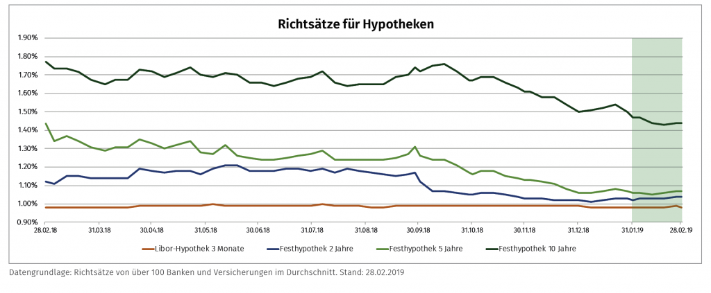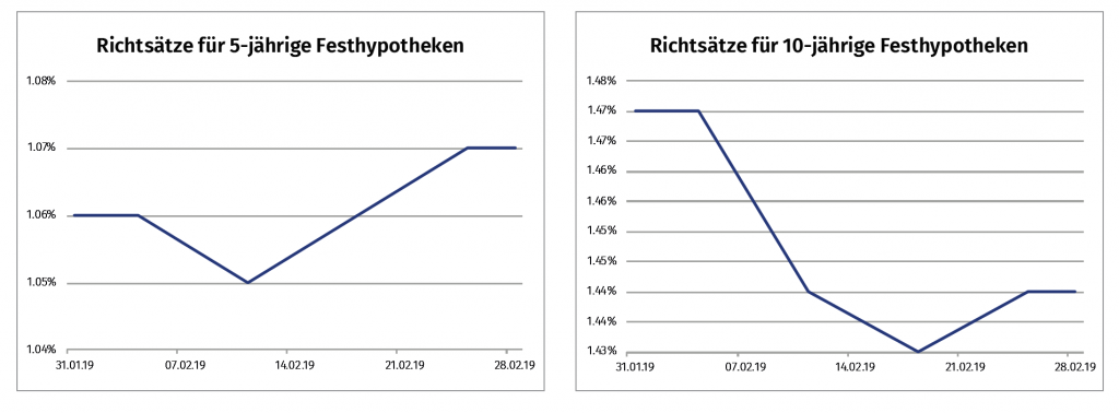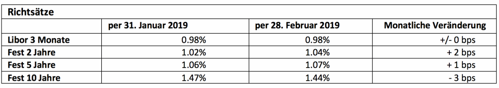 In der nachstehenden Tabelle finden Sie die durchschnittlichen Richtsätze für Hypotheken per 28. Februar 2019.