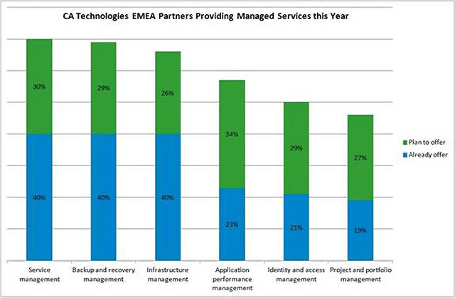 Die Studie belegt ausserdem, dass 40 Prozent der EMEA Partner von CA Technologies bereits Managed Services rund um Infrastruktur-, Speicher- und Recovery- sowie Service-Management anbieten. Bei der Frage, was sie in den nächsten zwölf Monaten planen, antworteten 34 Prozent, dass sie MSP-Angebote für das Applikations-Management planen, gefolgt von Service Management (30%), Identitäts- und Zugangsmanagement (29%) und Backup und Recovery (29%). (CA Technologies/mc)