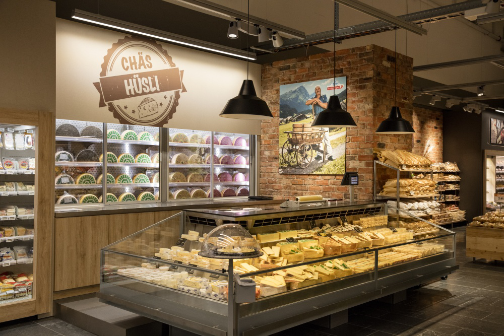 «Die Fleischtheke erinnert an die Dorfmetzgerei und das Chäs Hüsli an die Chäsi von früher», erklärte Sutter. Und das Brot wird beispielsweise neu vor einer Ziegelsteinmauer auf Regalen präsentiert. Das solle an eine traditionelle Bäckerei erinnern, sagte der Leiter der Verkaufsregionen Zürich, Nordwest- und Zentralschweiz, Roger Vogt, bei der Präsentation des neuen Ladens.
