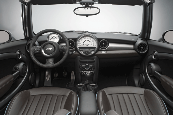 Die Modellkennzeichnung „Highgate“ auf den Seitenblinkereinfassungen, den Einstiegsleisten und den Sitzfahnen weist ebenso auf den exklusiven Charakter des Fahrzeugs hin wie die spezifische Farb- und Materialgestaltung im Interieur. Die Sitze in der Variante Leder Lounge sowie die Colour Line in Lederausführung sind in der Farbe Dark Truffle gehalten und jeweils mit hellen Kontrastnähten versehen. Zusätzliche Akzente werden durch hellblaue Keder an den Sitzen und Kontrastnähte in Dark Truffle am Schalt- beziehungsweise Wählhebel- sowie am Handbremshebelbalg gesetzt. Eine Edelstahl-Pedalerie, Interieurleisten in der Ausführung Suntouched Brushed Alloy, die Chrome Line Interieur und Fussmatten mit einer ebenfalls im Farbton Dark Truffle gehaltenen Einfassung komplettieren das stilvolle Ambiente im MINI Cabrio Highgate.