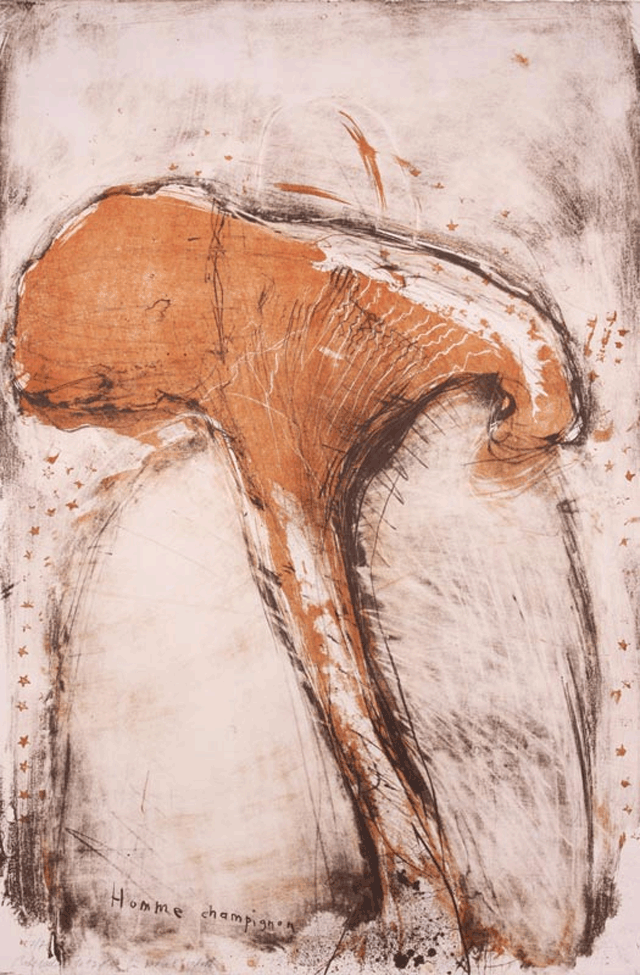 Rolf Iseli (geb. 1934); Homme Champignon, 1975. Farblithographie, Druck von zwei Steinen auf Vélin d’Arches, 122 x 81 cm (Blattgrösse); Auflage: 7 Expl.