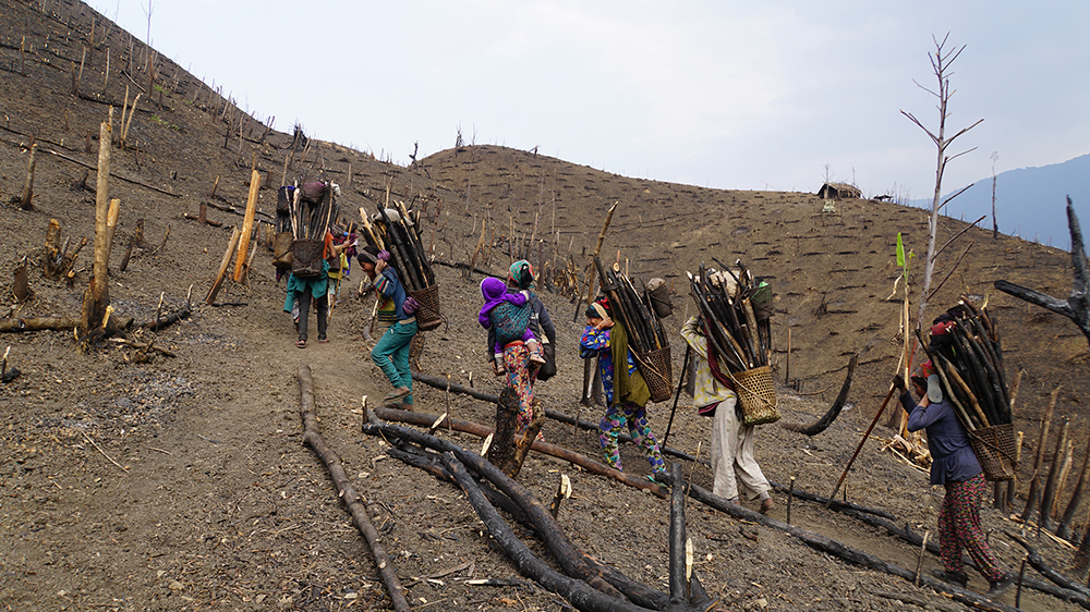 Während im südostasiatischen Tiefland hauptsächlich Bewässerungs-Feldbau betrieben wird, dominierte in den Bergregionen des Himalaya bis in jüngerer Zeit der Schwendfeldbau, die sogenannte Brandrodung. Dabei wird die Vegetation über der Erde abgebrannt, während das Wurzelwerk bestehen bleibt. So gewonnenes Ackerland wird zwei bis drei Jahre lang bewirtschaftet und dann als Brache ruhen gelassen, bis sich der einstige Bewuchs erholt hat. In der Vergangenheit konnte ein Zyklus über zwanzig Jahre betragen. Heute verkürzte er sich aufgrund von Bevölkerungswachstum und finanziellen Bedürfnissen vielerorts auf wenige Jahre. Die Folgen davon sind Kahlschlag, Erosion und restriktive Vorschriften bis hin zu nationalen Verboten dieser Anbautechnik. (Foto: Rebekka Sutter, 2017). (UZH/mc/ps)